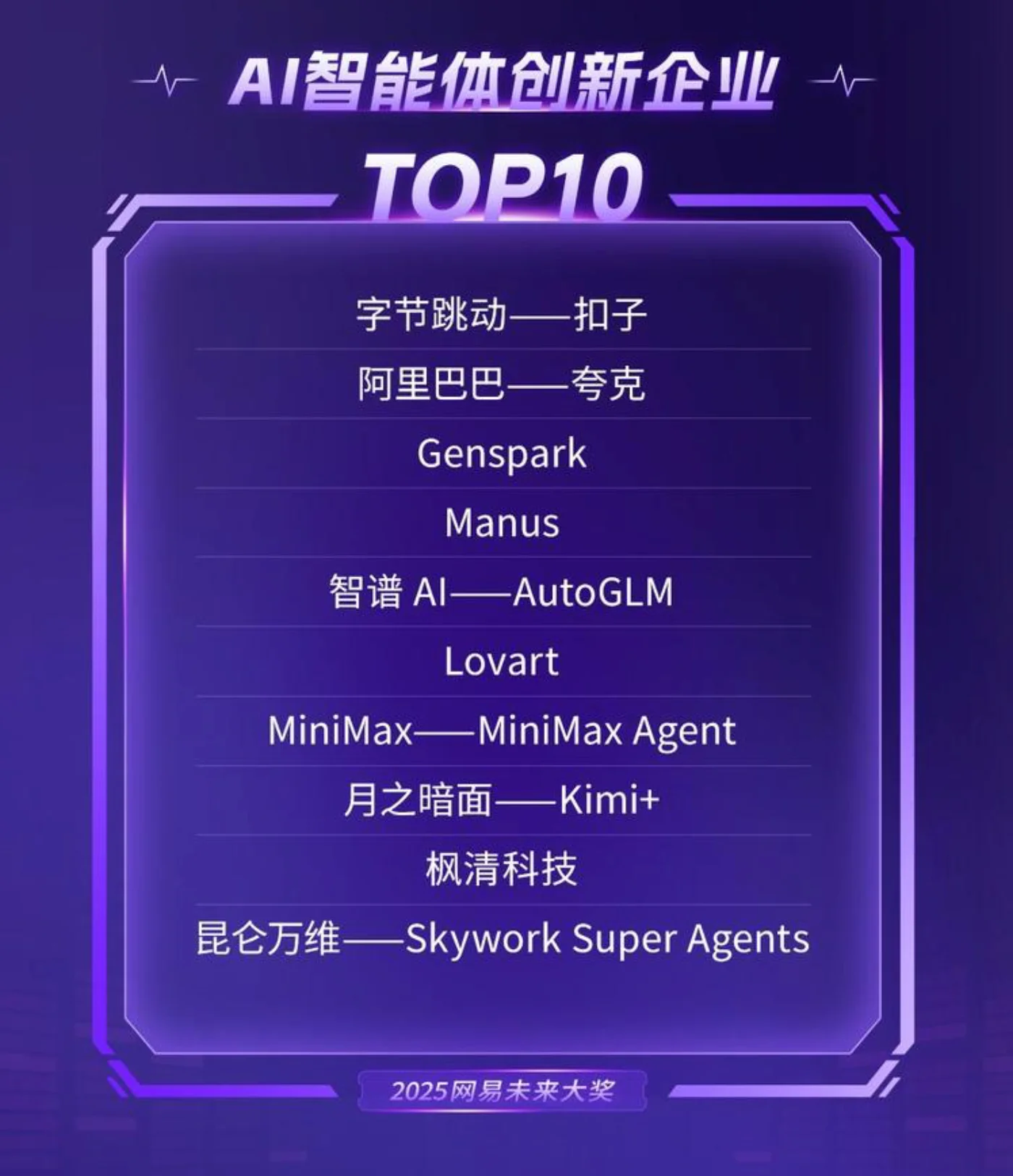 喜报 |枫清科技荣获2025网易未来大奖「AI智能体创新企业TOP10」